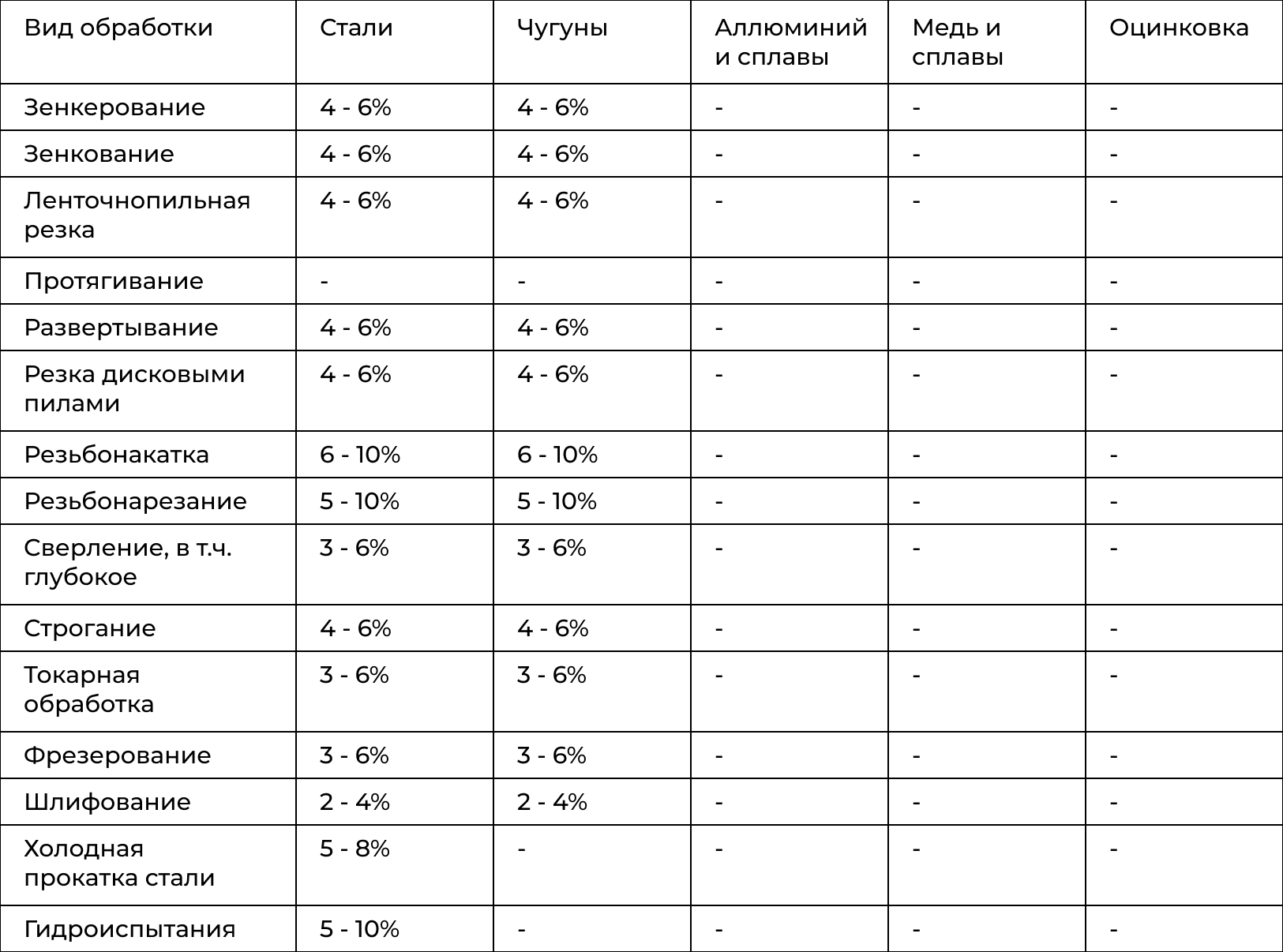 Смазочно-охлаждающая жидкость «Конвекс» является водосмешиваемой, соответственно, исходными компонентами рабочей эмульсии СОЖ «Конвекс» являются концентрат СОЖ и вода. Подбор концентрации является важным этапом приготовления рабочего раствора. Предлагаем Вам ознакомиться с рекомендуемыми концентрациями рабочей эмульсии в зависимости от вида обработки и обрабатываемого материала.